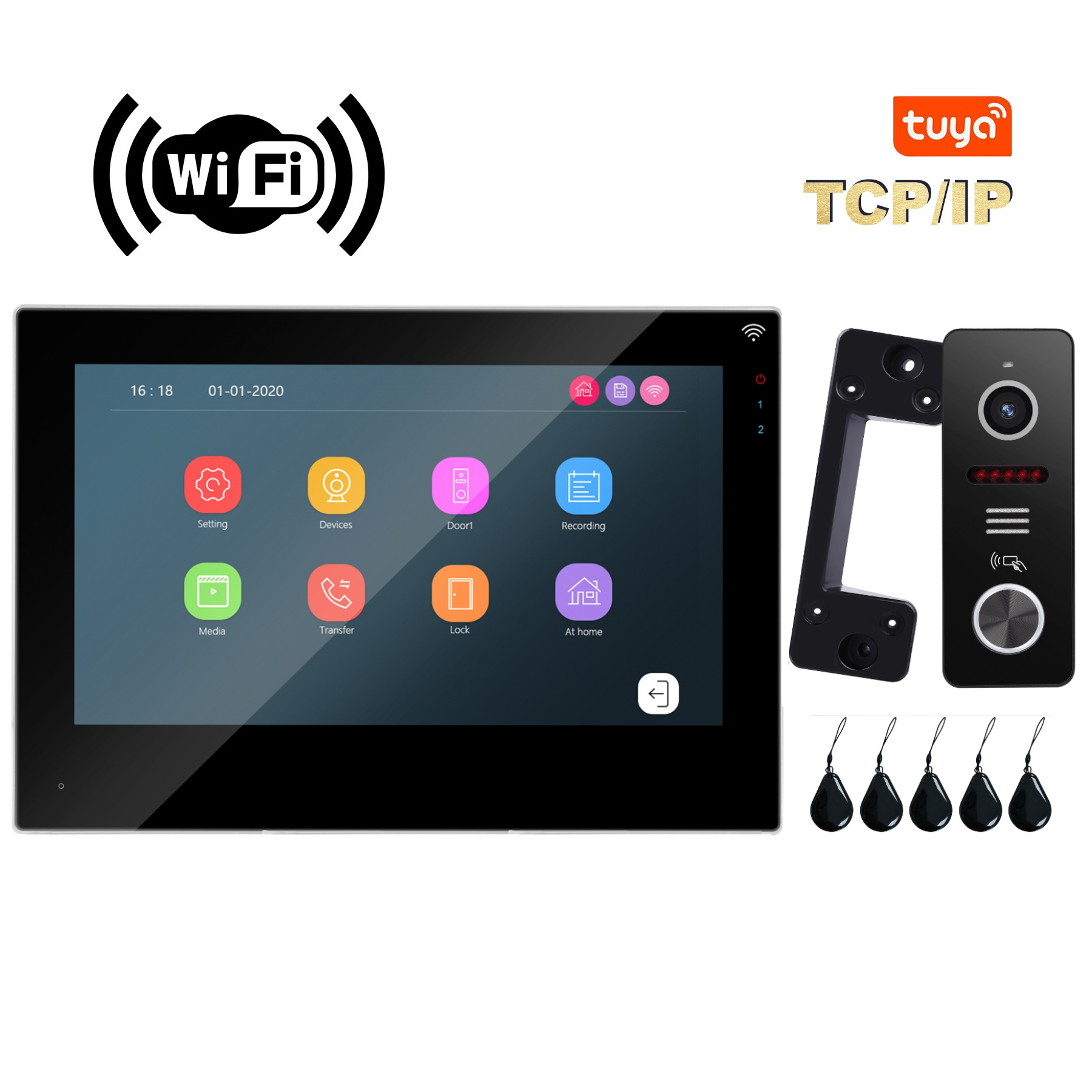 iP WiFi Монитор 7" + 1 вызывная панель, 5 ключей, 1 блок питания.