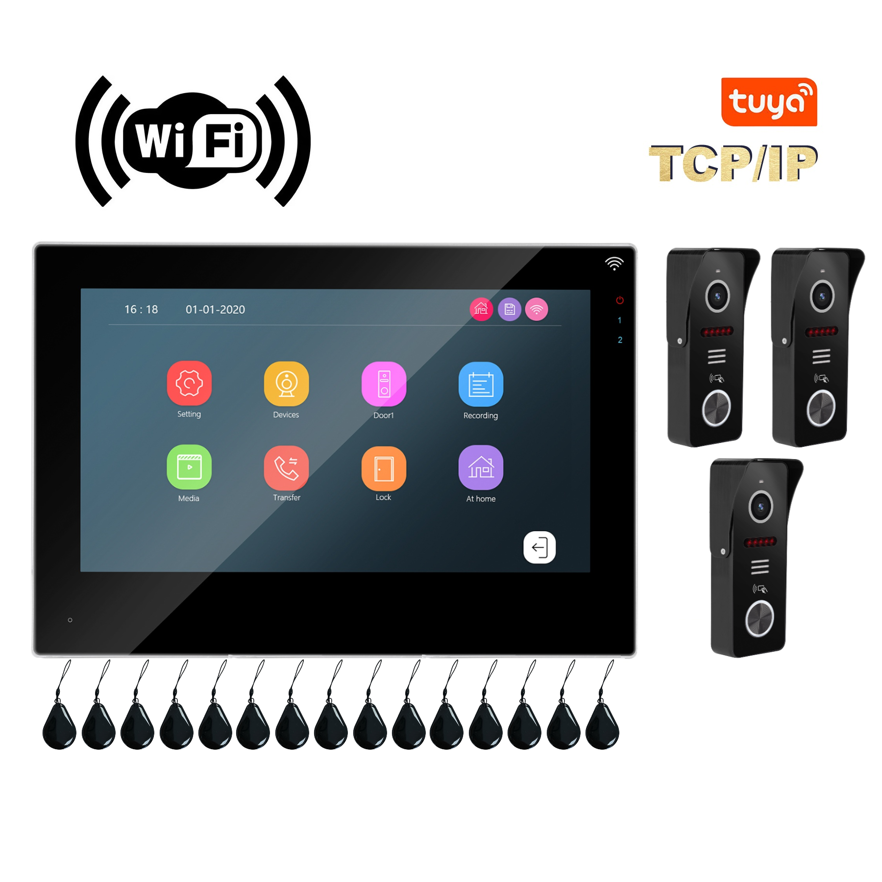 iP WiFi Монитор 7" + 3 вызывные панели, 15 ключей, 3 блока питания.