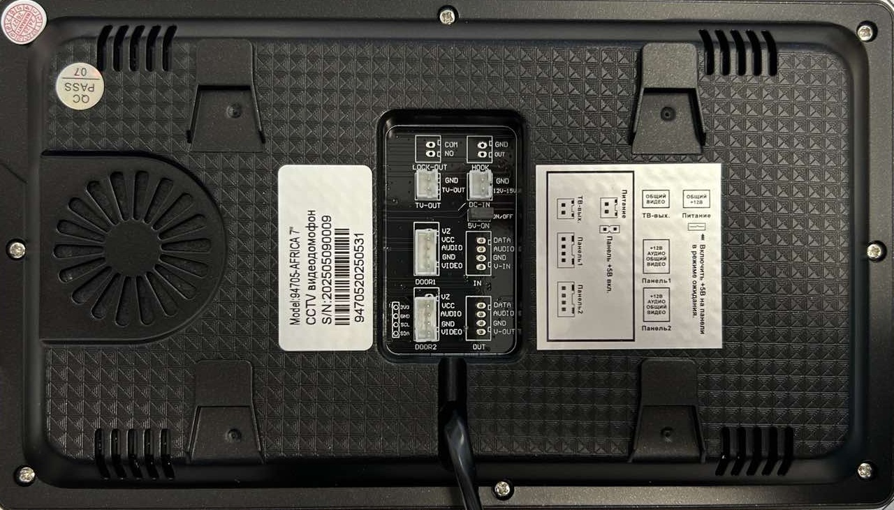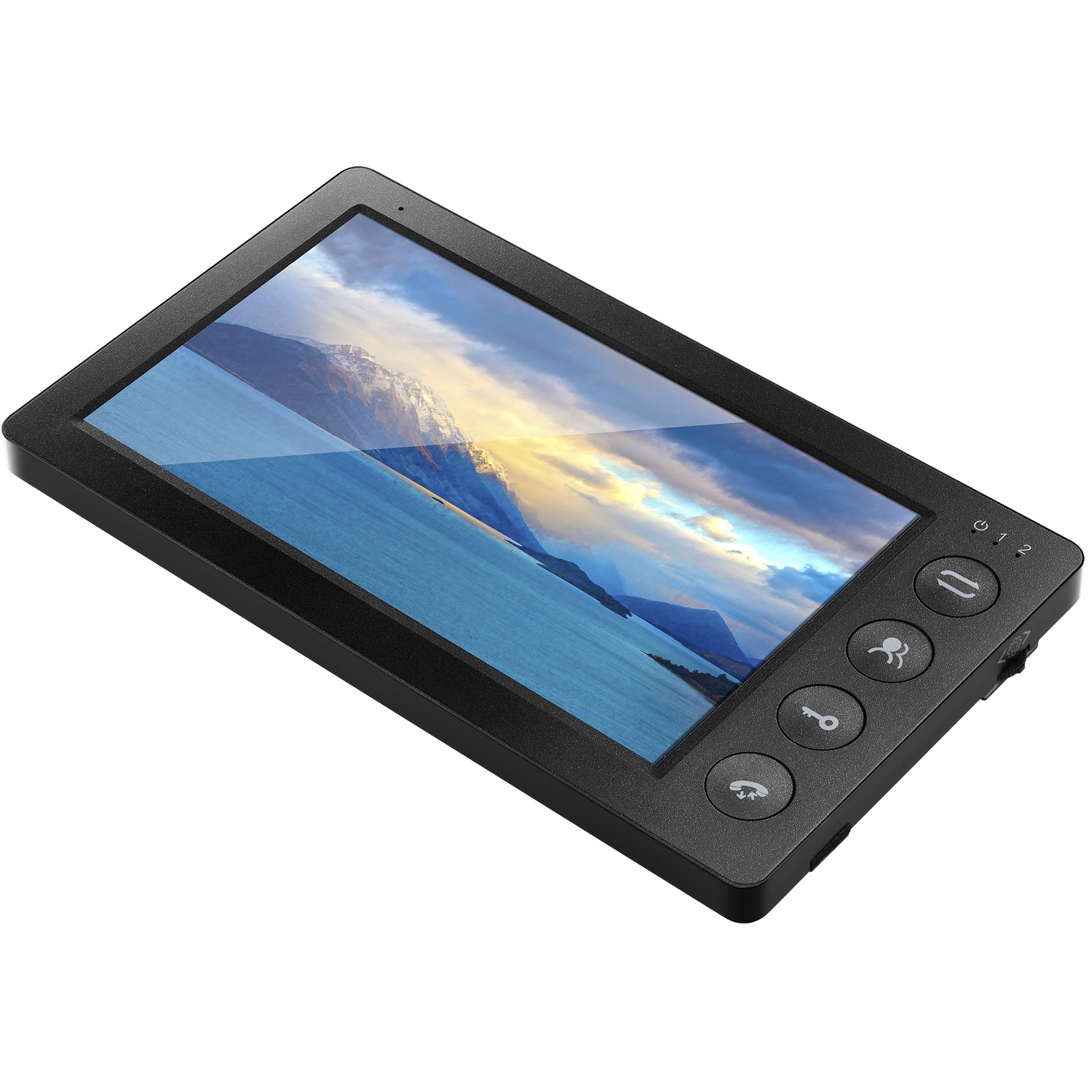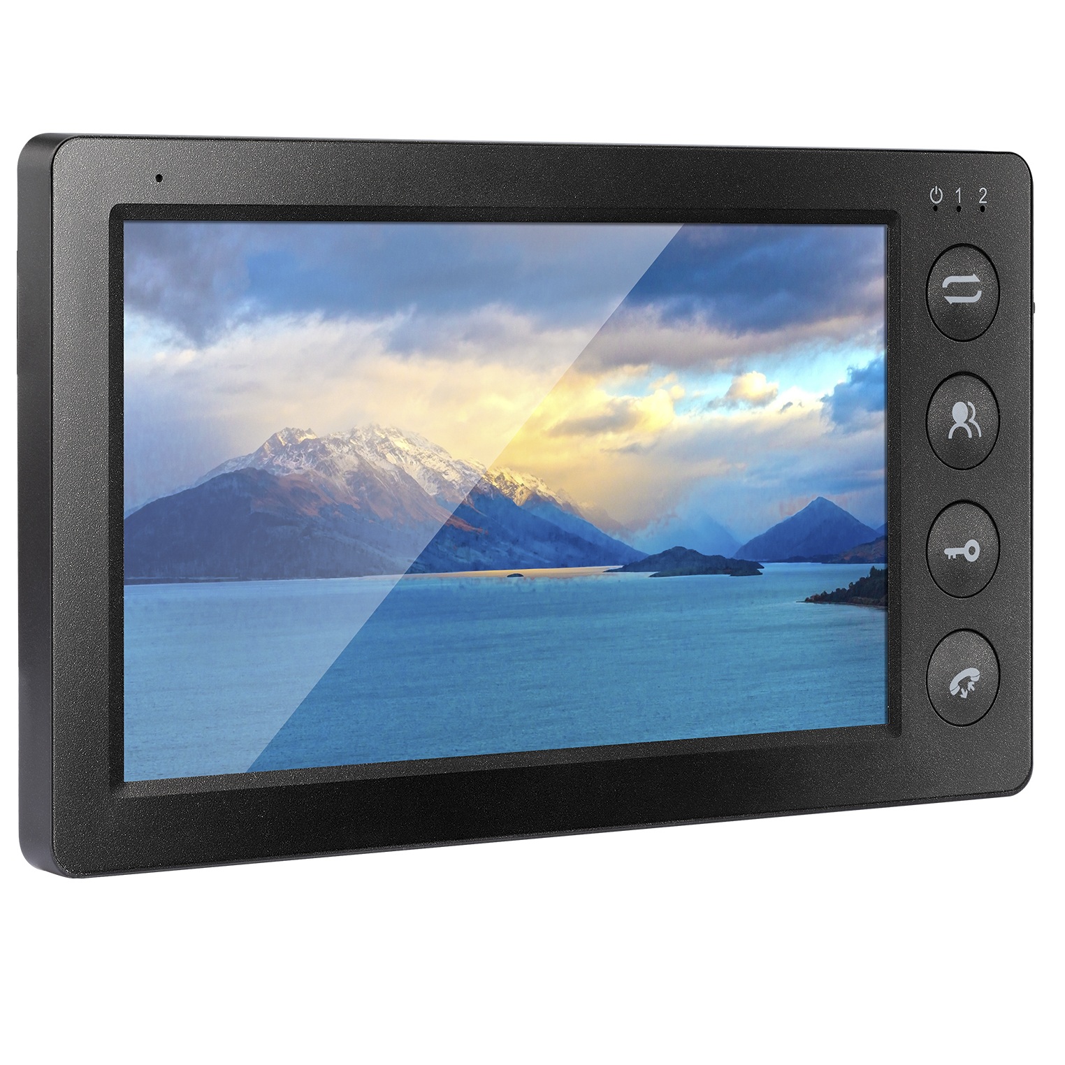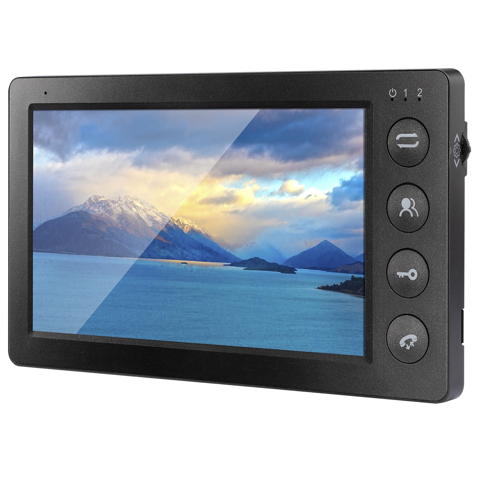 Видеодомофон аналоговый CCTV. Экран 7" TFT с разрешением 480*272. Разговор / Разблокировка / Мониторинг / Перевод вызова. Поддержка 2 панелей вызова + 1 внутренний монитор, открытие до 2 замков. Функция часов. Материал: Пластиковая оболочка.