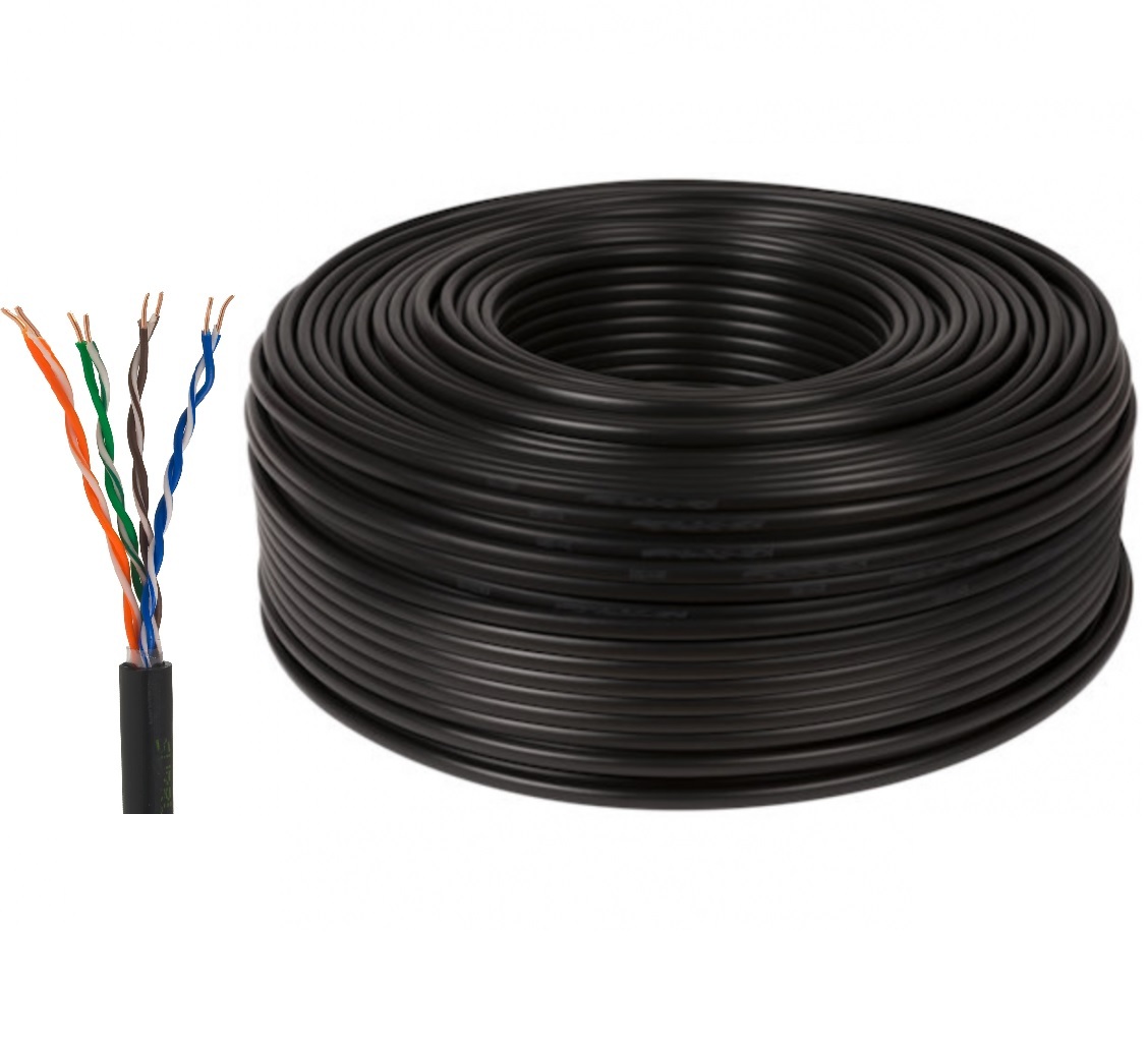 Премиальный кабель медная витая пара U/UTP Cat 5e РЕ 4х2х0,52 уличный без экрана черный, бухта 305м. Кабель связи симметричный предназначенный для прокладки в телефонной канализации, в коллекторах, шахтах, по стенам зданий и подвески на воздушных линиях связи; для стационарной прокладки внутри зданий; для прокладки во внутренних электроустановках, а также в зданиях, сооружениях и закрытых кабельных сооружениях; для прокладки во внутренних электроустановках, а также в зданиях и сооружениях с массовым пребыванием людей.