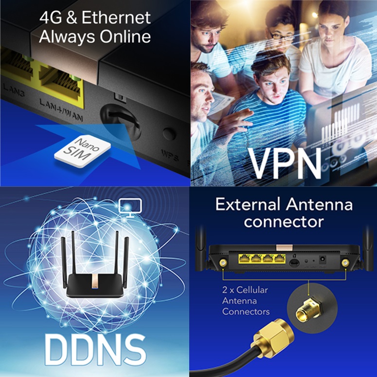 Поддерживает технологию MESH для бесшовного наращивания локальной сети, устраняет «мертвые зоны». Проводной и беспроводной интернет раздается всем вашим устройствам на высокой скорости, надёжно и стабильно. Роутер поддерживает диапазоны FDD и TDD. Использует технологию 4G LTE последнего поколения для достижения скорости загрузки данных до 150 Мбит/сек и отправки данных до 50 Мбит/сек.