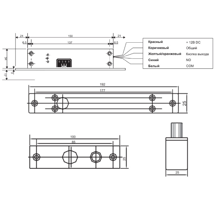 AT-EL500A-2 Замок электромеханический врезной, эксплуатация внутри помещений, нормально-открытый, универсальный. Встроенный датчик состояния двери - позволяет точно отслеживать, закрыта или открыта дверь, повышая контроль над доступом.. Встроенный таймер автоматического запирания с возможностью выбора интервалов: 0, 3, 6 или 9 секунд, обеспечивает гибкость в настройке времени закрытия двери после её открытия. Изготовлен из нержавеющей стали, что гарантирует высокую прочность, долговечность и устойчивость к коррозии. Подключение кнопки выхода. Напряжение питания: 12V DC. Ток потребления: не более 0.2А. Рабочая температура: -10…+25°С. Габаритные размеры: (L)192х(W)25х(H)37mm (замок), (L)100x(W)25х(H)3mm (ответная планка).