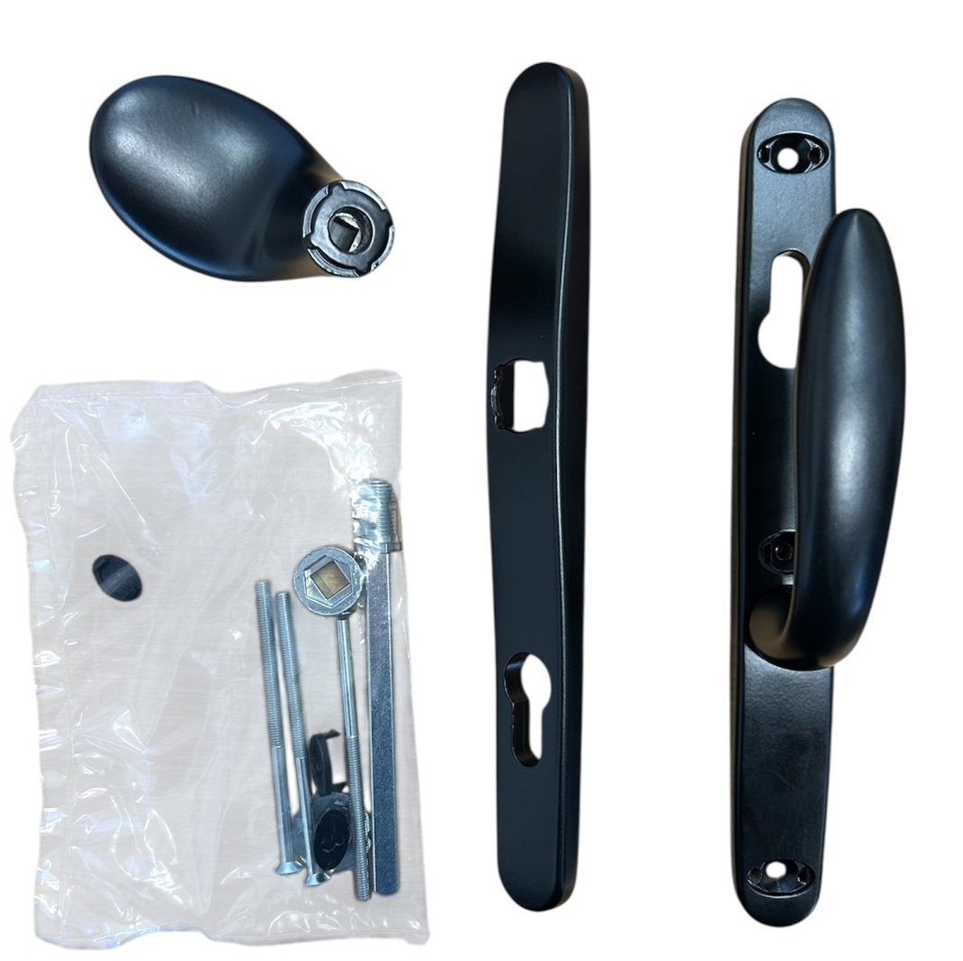 1079.00.313 Нажимной гарнитур 30/85, подпруж. ухват, черный - межосевое расстояние 85мм. Односторонняя ручка ухват не поворотная дверная черная. Дверные ручки и ухваты серии созданы, как правило, для дверей из металла, ПВХ и алюминия. Прочная и устойчивая конструкция монтируется на кольцах планки. Основное использование - замена нажимной ручки двери на не поворотную, при установке электрозамка (защелка, электромагнит). Разборная конструкция позволяет установить ручку ухват в существующую дверную планку.