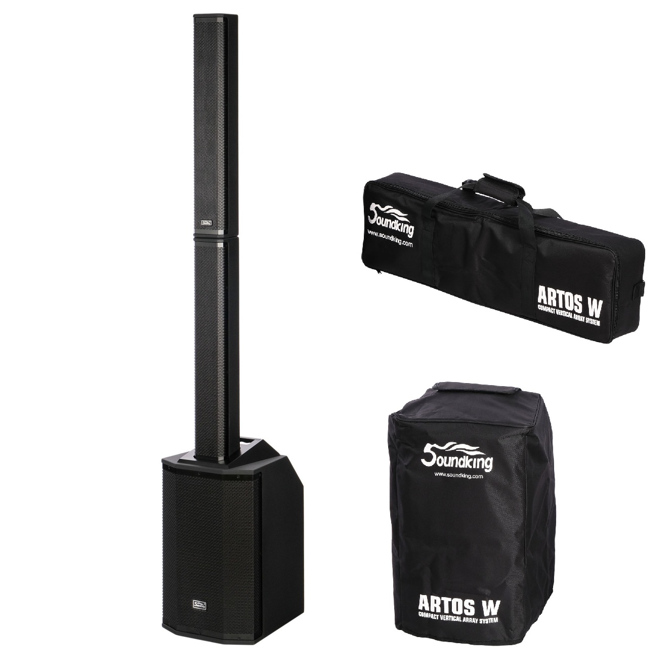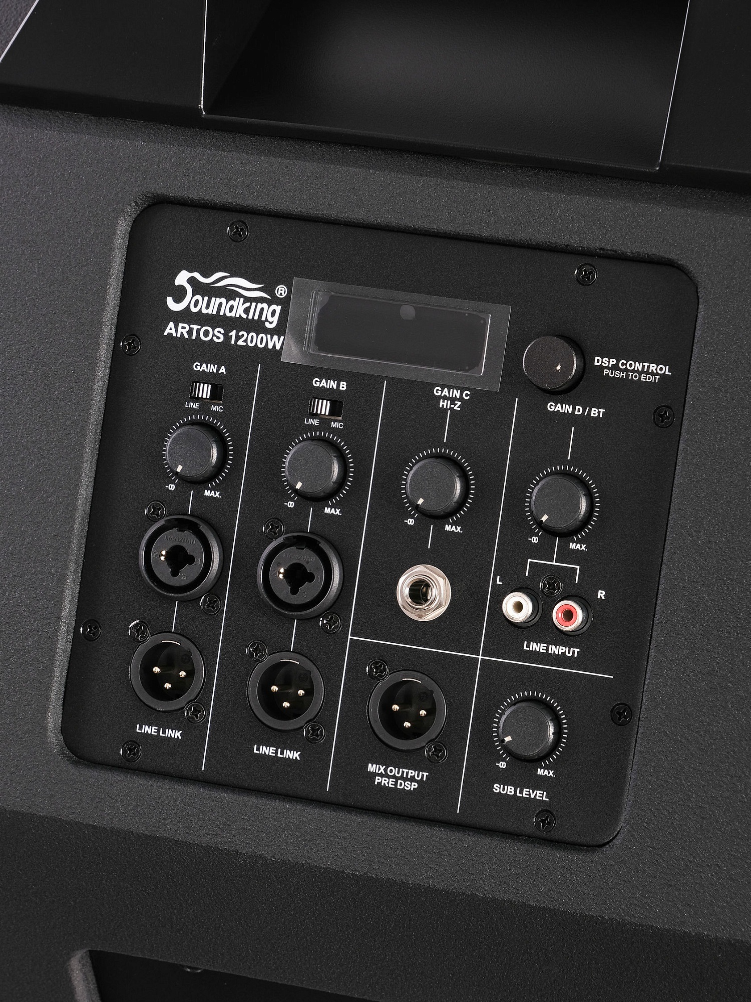 ARTOS-1200W Акустическая система (звуковая колонна, сабвуфер с микшером), Soundking. Универсальная акустическая система, удобная в транспортировке и настройке. Настройка режима в соответствии со сценой в реальном времени. Высота системы может быть отрегулирована в соответствии с требованиями для получения наилучшего звукового покрытия. Конструкция горна динамика высоких частот с постоянной направленностью, равномерно покрывающая звуковое поле. Цифровая задержка для зон до 100м.