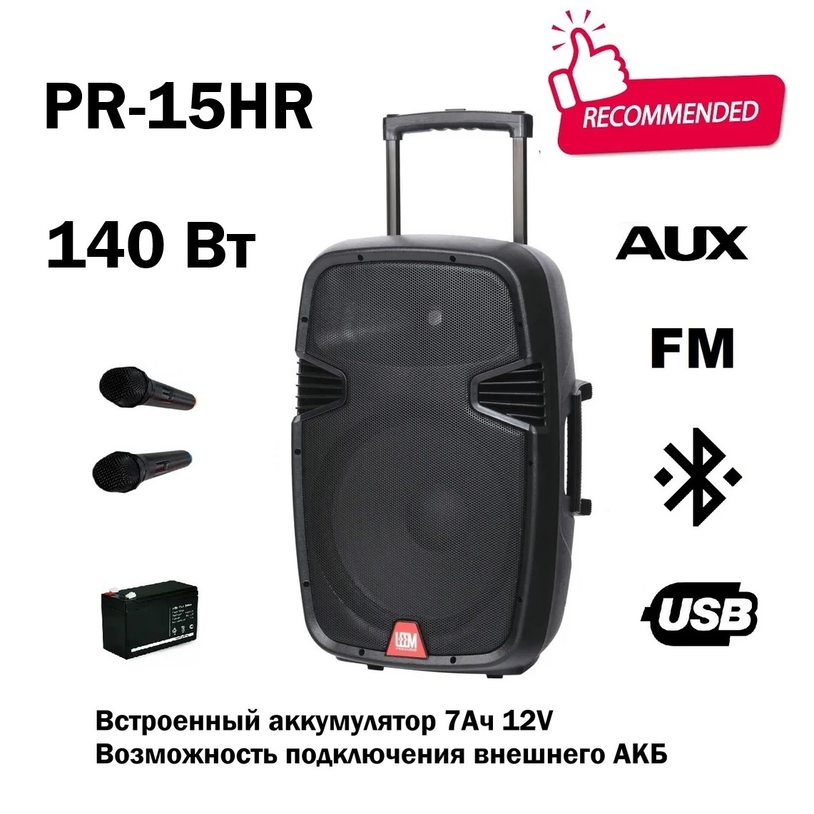 PR-15HR активная акустическая колонка, система с 2 микрофонами и аккумулятором 140Вт Leem