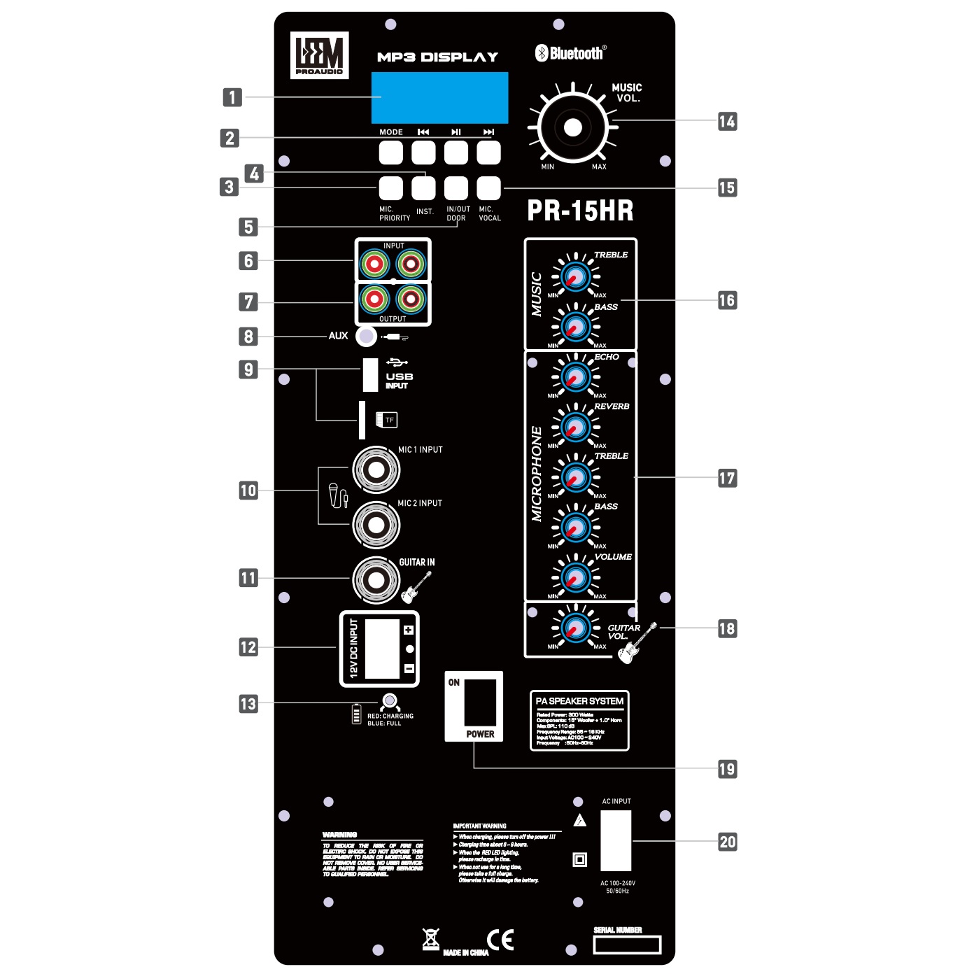 | Модель, производитель: | PR-15HR двухполосная активная автономная акустическая колонка с АКБ и встроенным усилителем Leem |