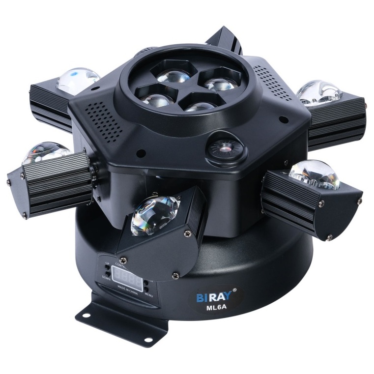 Меню ML6A Моторизированного прожектора смены цвета (колорчэнджер) паук, RGWB, 10х10Вт+лазер, Bi Ray:
