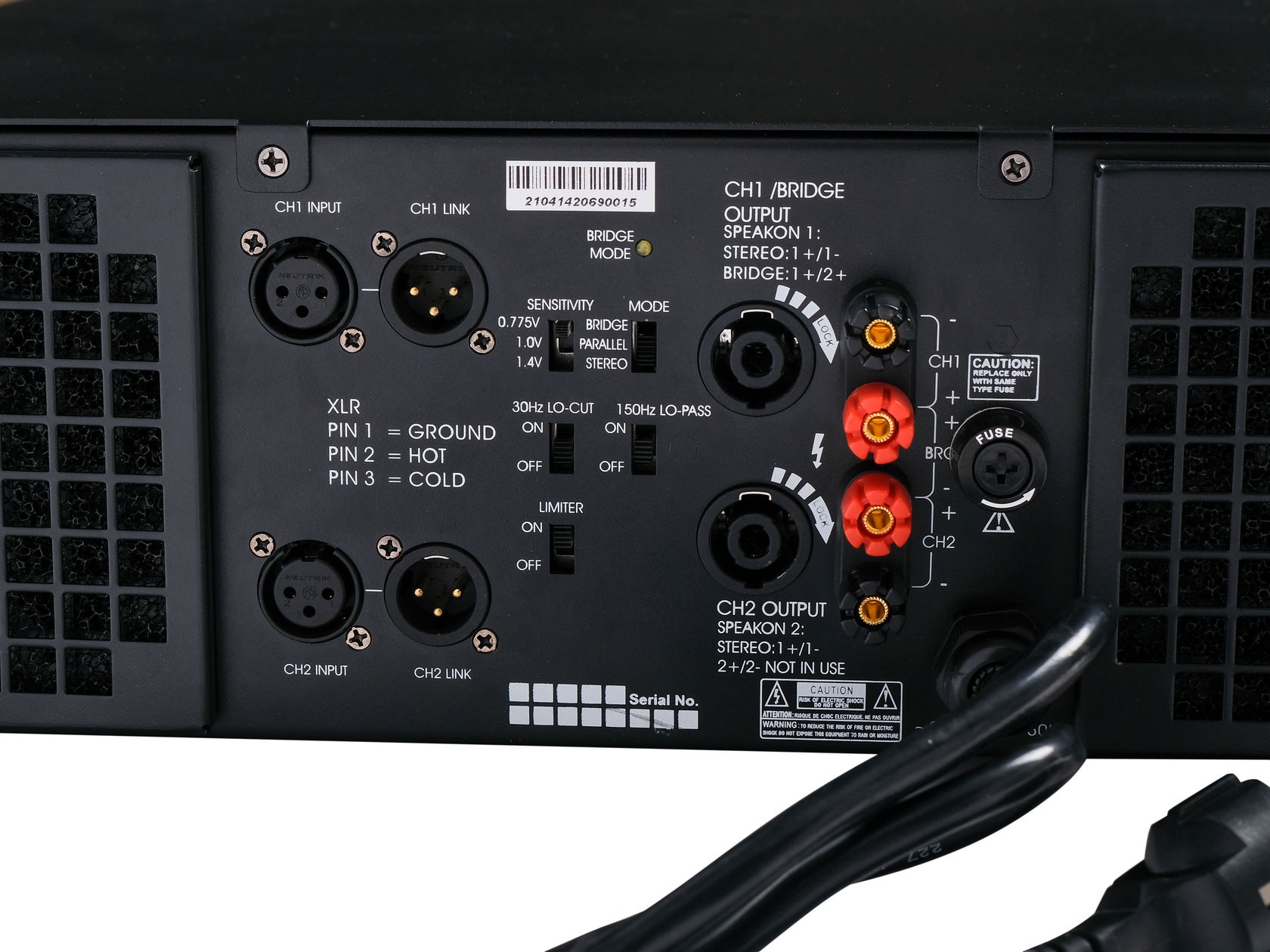 Разъемы: XLR балансный вход, выход Speakon, выходные винтовые клеммы.