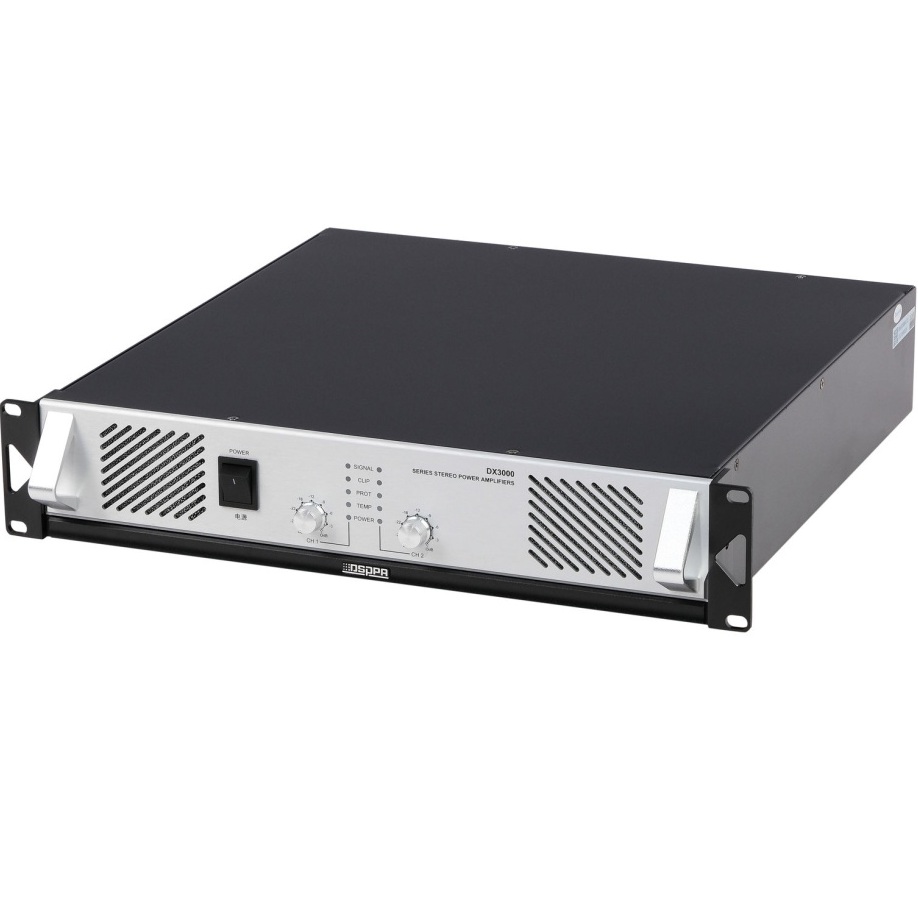 DX3000 Усилитель мощности, 2х650Вт, DSPPA. Двухканальный профессиональный стереоусилитель мощности. Несколько диапазонов мощности. 3 режима выхода: моно, стерео, мост. Каждый канал с индивидуальным регулятором громкости. Разъемы XLR и 6,35 мм аудиовхода. Светодиодный индикатор рабочего состояния каждого канала. Защита от короткого замыкания, постоянного тока, высокой температуры и т. д.
