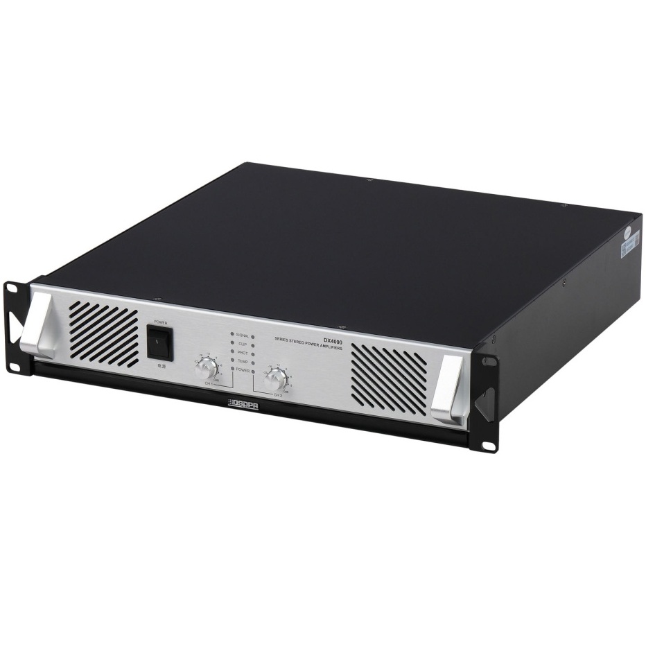 DX4000 Усилитель мощности, 2х1000Вт, DSPPA. Двухканальный профессиональный стереоусилитель мощности. Несколько диапазонов мощности. 3 режима выхода: моно, стерео, мост. Каждый канал с индивидуальным регулятором громкости. Разъемы XLR и 6,35 мм аудиовхода. Светодиодный индикатор рабочего состояния каждого канала. Защита от короткого замыкания, постоянного тока, высокой температуры и т. д. Защита от поражения электрическим током, предотвращение повреждения электросети и аудиооборудования.