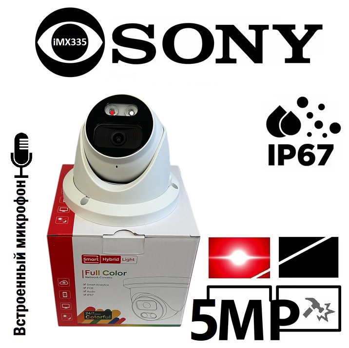IP антивандальная камера уличная 5MP / 30 fps. Матрица 1/2.8" SONY Starvis Back-illuminated sensor, DWDR; With IR-CUT . Интелелктуальная подсветка 4000K 30м белый свет + iR ИК 40м инфрокрасный. Светочувствительность 0.001 Lux. Объектив 2,8 мм. Встроенный микрофон. H.264/H.264+/H.265/H.265+/JPEG/AVI. Питание 12В (PoE). Видеоаналитика: детекция движения по секторам, маскировочные зоны. Пылевлагозащищенная IP68 от -40 до +60. Корпус металл: ¢125 x 90,2 мм, разьемы прячутся под базу для установки камеры. BitVision Сервис P2P для удаленного просмотра ваших камер через интернет без выделенного ip адреса., iVMS320 ПО для MAC и Windows, подключение к облачному сервису ipeye. Полное соответствие для подключения к видеорегистраторам Cantonk и Longse. ONVIF 19.12(Profile S/T/G).