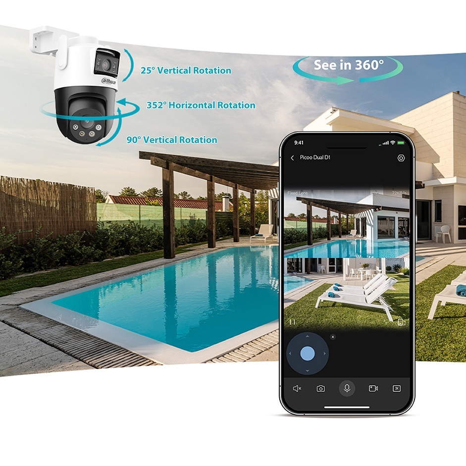 Линейка Picoo Dual, входящая в серию Dahua Wireless, состоит из видеокамер, оснащенных как фиксированным, так и поворотным модулем. Эта уникальная комбинация позволяет осуществлять одновременный мониторинг в реальном времени двух зон, обеспечивая наблюдение с разным полем зрения. Благодаря такой двухматричной конструкции видеокамера способна осуществлять интеллектуальное обнаружение с использованием передовых функций, таких как обнаружение человека и транспорта на базе ИИ, эффективно сокращая до минимума количество ложных тревог. Кроме того, благодаря поворотному модулю видеокамера поддерживает автоматическое слежение за движущимися объектами. Видеокамера также может использовать звуковую и световую сигнализацию при обнаружении проникновения посторонних, оперативно отправляя уведомления на мобильный клиент, чтобы вы оставались в курсе событий независимо от вашего местонахождения. Эти видеокамеры широко используются на небольших объектах, таких как магазины и рестораны.