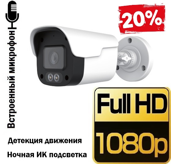 IPC-020MiCiRP 3.6mm IP пластиковая IP66 камера с микрофоном уличная 2 МП 1080P при 25 fps. Матрица 1/2.9" Progressive Scan CMOS, Fullhan SOC,DWDR, With IR-CUT, DWDR. ИК подсветка 25 м. Светочувствительность 0.01 Lux день / 0 Lux ночью при включенной ИК подсветке. Объектив 3.6мм, угол обзора по горизонтали 73°. Питание 12VDC (700mA)/Poe. Видеоаналитика: обнаружение вторжений на основе определения формы человека, детекция движения по секторам, маскировочные зоны. Корпус пластик: 69.8×67.9×174 мм. Пылевлагозащищенная IP66 от -40 до +60. P2P технология BitVision. (H.264/H.264+)(H.265/H.265+). ONVIF 2.4(Profile S/T/G) - протестировано на запись по движению со звуком с регистраторами Longse, Cantonk, HiWatch и HikVision. Камера для пункта выдачи заказов (ПВЗ) Wildberries и OZON.