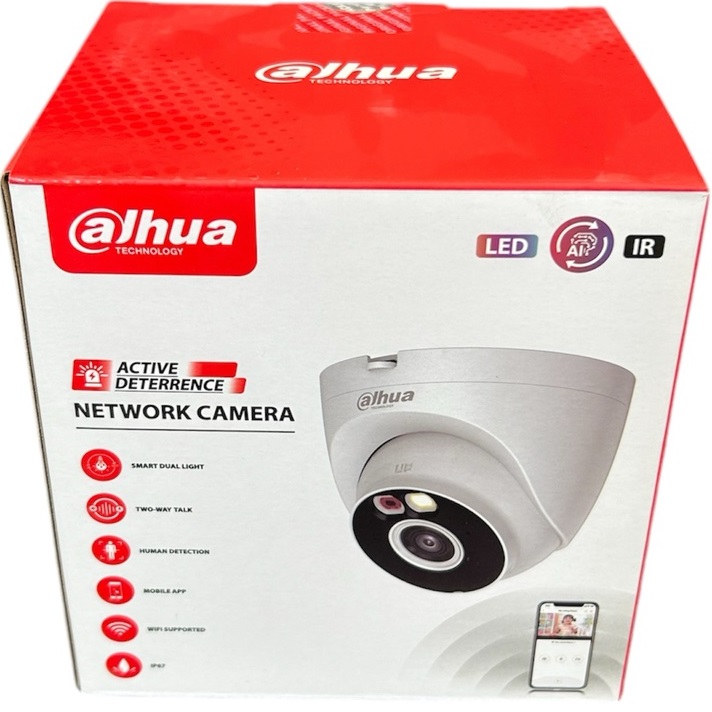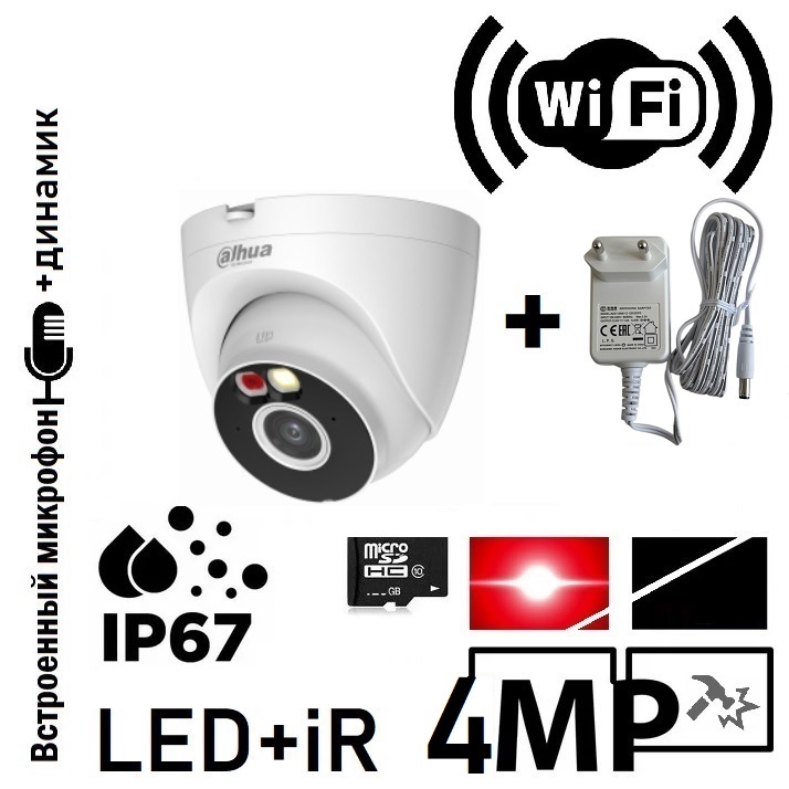 DAHUA DH-IPC-T4AP-PV-0280B Уличная Wi-Fi антивантивандальная купольная IP-видеокамера с двойной подсветкой ИК до 30м и LED до 30м и Wi-Fi 4Мп; 1/3” CMOS; объектив 2.8мм - широкий угол обзора H: 98°; V: 55°; D: 115°; чувствительность 0.005лк F1.6; сжатие: H.265+, H.265, H.264+, H.264, MJPEG; 2 потока до 2Мп при 25к/с; DWDR; 3D NR; BLC; обнаружение людей; интеллектуальная двойная подсветка; встроенные микрофон и динамик с регулировкой уровня чувствительности и звука, Audio Compression G.711a; G.711Mu; PCM; G.726; слот для MicroSD до 256Гбайт отдельная крышка на сфере для удобства установки; защита: IP67 от -40 до +60; питание: 12В(DC); корпус: шар металл, пластик; Wi-Fi IEEE802.11b/g/n 2.4–2.4835 GHz; 2.4 G. Программное обеспечение для управления Smart PSS; DSS; DMSS - Мобильное приложение для iOS и Android. Основной поток: 2560 × 1440 кадров в секунду (1-25/30 кадров в секунду); дополнительный поток: 640 × 480 кадров в секунду (1-25/30 кадров в секунду) - приведенные выше значения являются максимальными. частота кадров для каждого потока; для нескольких потоков значения будут зависеть от общей пропускной способности кодирования. Вес 300 гр.