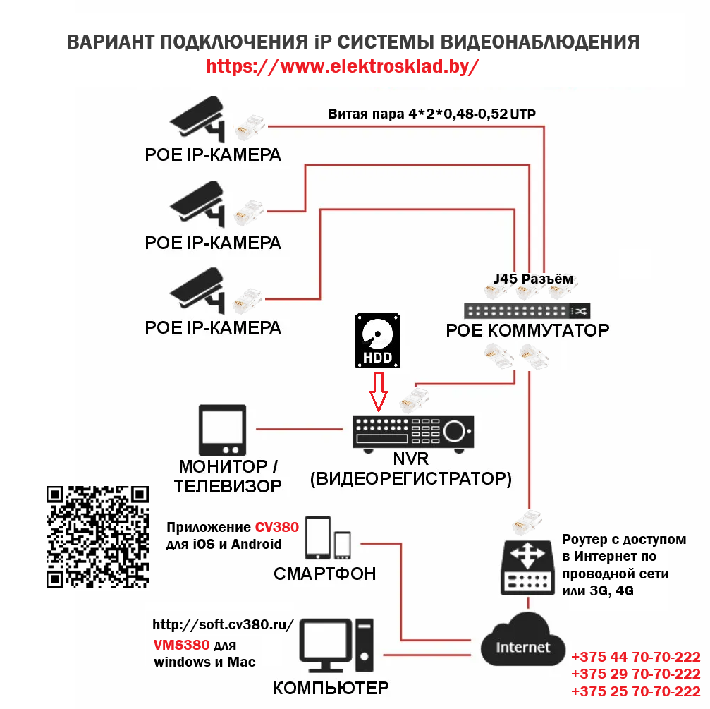 Купить готовый комплект видеонаблюдения на 1, 2, 3, 4, 6, 8, 16 камер для частного дома, склада, производства или другого объекта в Минске, Гомеле, Могилеве, Гродно, Витебске, Бресте и областях по выгодной цене можно, обратившись к нашим специалистам.