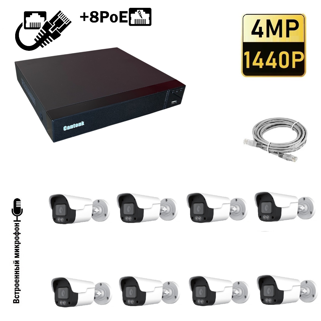 Готовый комплект 4 MP 1440P уличного или внутреннего видеонаблюдения на 8 iP камер PoE с доступом через Интернет.