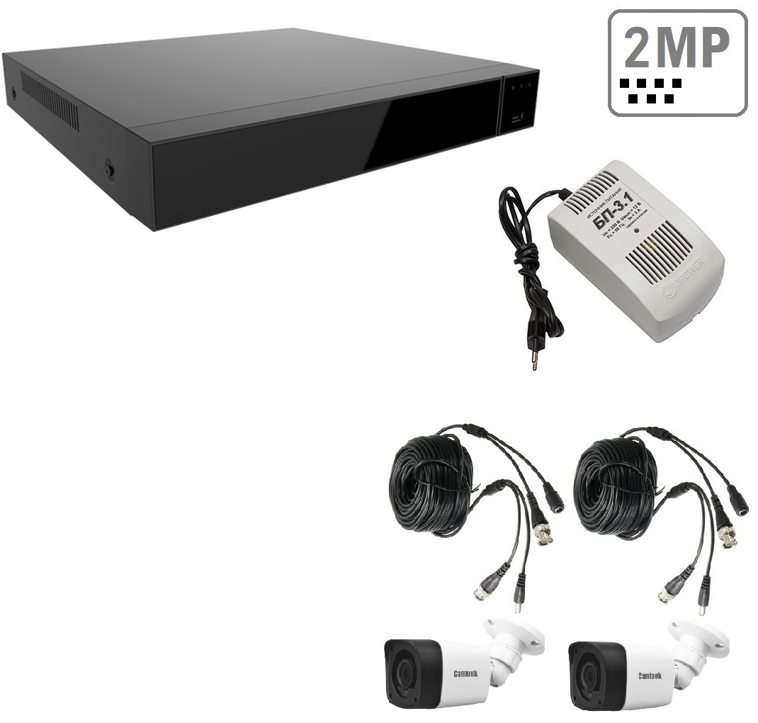 Комплект видеонаблюдения на 2 камеры "Вижу" 2 включает: