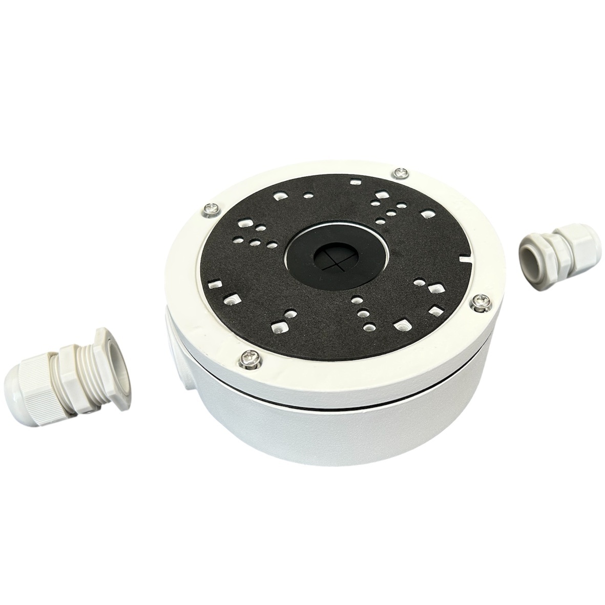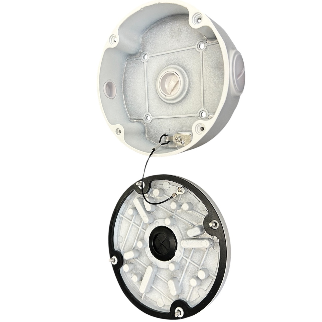 B320 коробка кронштейн для камеры видеонаблюдения Cantonk. Материал - металл. Цвет: белый. В комплекте 2 гермоввода - устанавливаются при необходимости. Размеры: ¢138 x 54 мм. Вес: 0.660 кг.