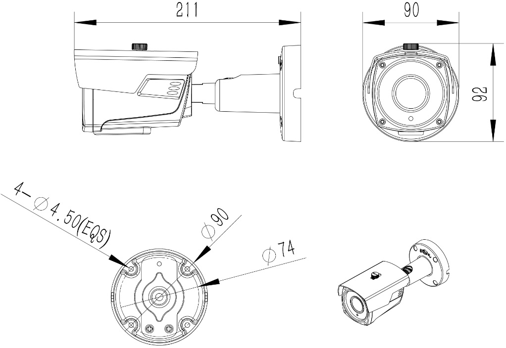 | Сенсор | 1/2.9" CMOS Sensor, HISILICON Hi3516E WDR, With IR-CUT |