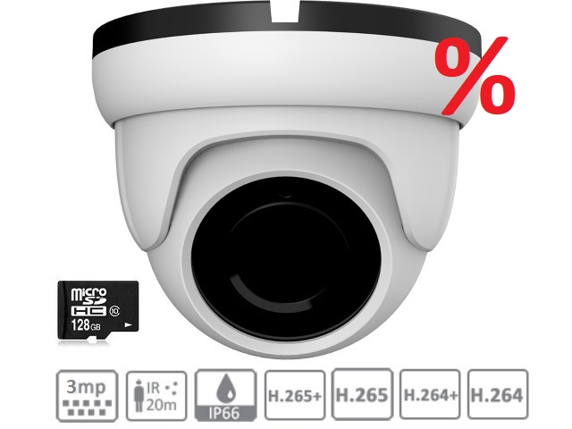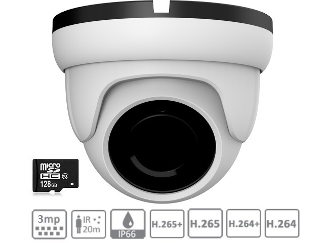 IP антивандальная камера уличная 3МП / 15fps, 2МП / 30fps. Матрица 1/2.8" SONY Starvis Back-illuminated CMOS Sensor HISILICON Hi3516C, WDR ; Starlight. ИК подсветка 20 м. Светочувствительность 0.005 Lux. Объектив 2.8мм. Втроенный микрофон. Питание 12В (PoE). Видеоаналитика: детекция движения по секторам, маскировочные зоны. Корпус металл: ¢93 x 74 мм. P2P технология. ONVIF 2.4.