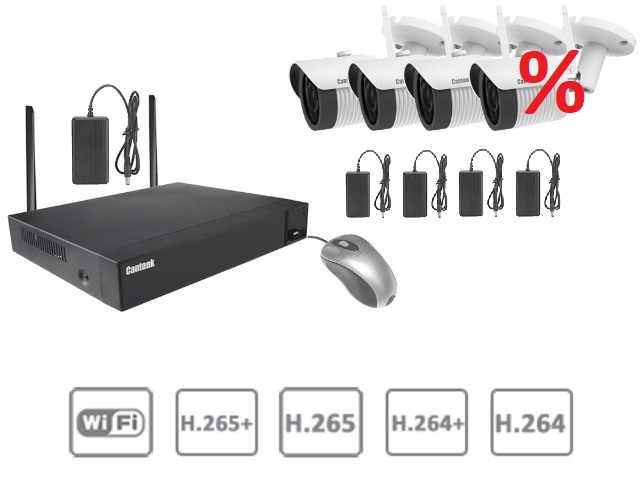 Kits WIFICE4364HF200 Комплект IP c WiFi 4-канальный беспроводной NVR и 4 IP камеры WiFi.