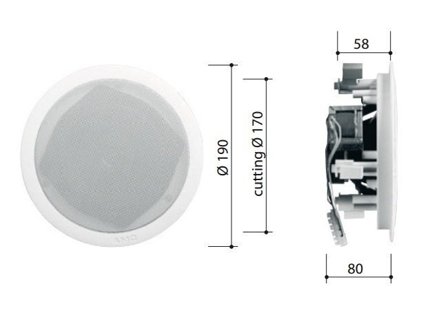 PC 5TX - 10 Вт коаксиальный потолочный громкоговоритель. Почти такая же структура и спецификация как PC5T, но лучше звук, предназначен для фоновой музыки.