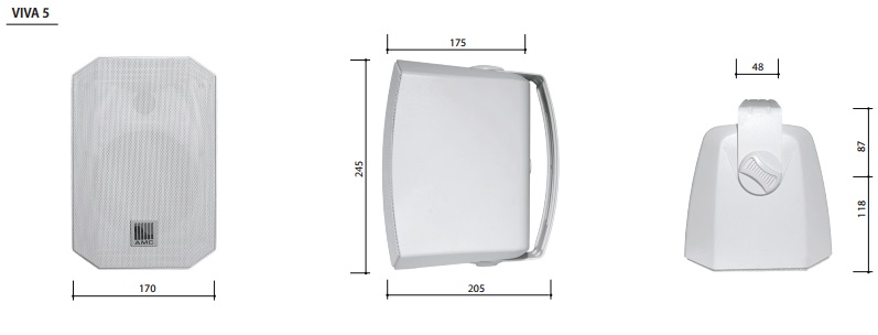 VIVA 5 первый оратор совершенно новый дизайн акустических систем серии из AMC. Элегантный современный дизайн, гладкая поверхность корпуса и мягкий динамик. Классические формы с современным подходом, что позволяет громкоговорителю легко адаптироваться в самых разнообразных современных интерьерах и становятся неотъемлемой частью архитектуры. Вращая AMC: логотип, новый дизайн U-образный кронштейн обеспечивает широкий спектр вариантов монтажа. Полукольцевой кронштейн не только хорошо выглядит, но и позволяет легко регулировать угол установки в пределах 15 градусов. Регулировка мощности на динамик очень удобна. Ультра тонкий и плоский селектор питания выглядит очень элегантно. Интегрированные разъемы Phoenix показывают усовершенствованный дизайн динамика. Три цвета на выбор. Двух полосный громкоговоритель с 5-дюймовым низкочастотным и 1 дюймовым динамиком внутри.