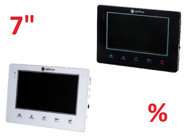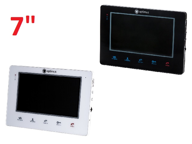 Цветной монитор видеодомофона Optimus VM-7S оборудован 7” TFT LCD дисплеем, с разрешением 800х480 пикселей.