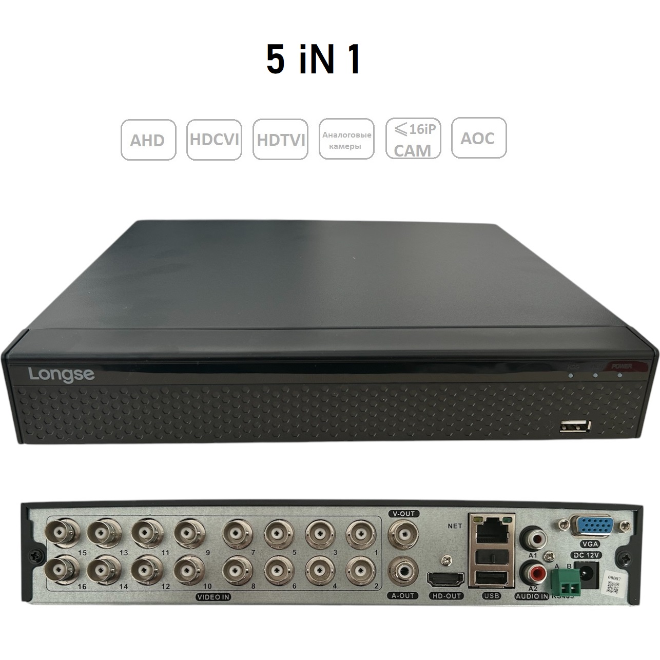 16 канальный гибридный видеорегистратор AHD / CVI / TVI 2.0 / TVI 3.0 (5M-N) / Аналоговый режим (960H) / Network IP (8MP макс. 16 каналов) общий входящий битрейт < 80Mb. Видео выходы: 1 VGA, 1 HDMI, 1BNC, аудио 2вх./1вых, поддержка AOC HDTVI Audio Compression G.711u/G.711a, 1xRS485 Pelco-D, Pelco-P. Ethernet 1xRJ45 10M/100M, 1 Жесткий диска SATA (2.5"/3.5" SATA, до 8 ТБ). Формат сжатия H.265+/H.265/H.264+/H.264. Видеоаналитика: детекция движения по секторам, маскировочные зоны. Одновременные операции: просмотр, запись, воспроизведение, резервное копирование. Поддерживает удаленный просмотр (статический IP, Р2Р, Поддержка IE, VMS и CMS ) с помощью iPhone, iPad, Android, Windows Phone, Windows, MacOS. Операционная система LINUX. Источник питания DC12V 2А. Размеры (ДхШхВ): 260*215*43мм, 2кг.