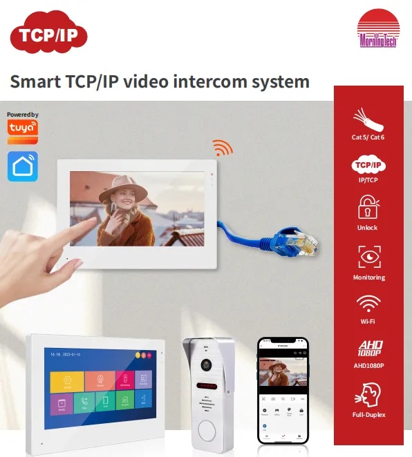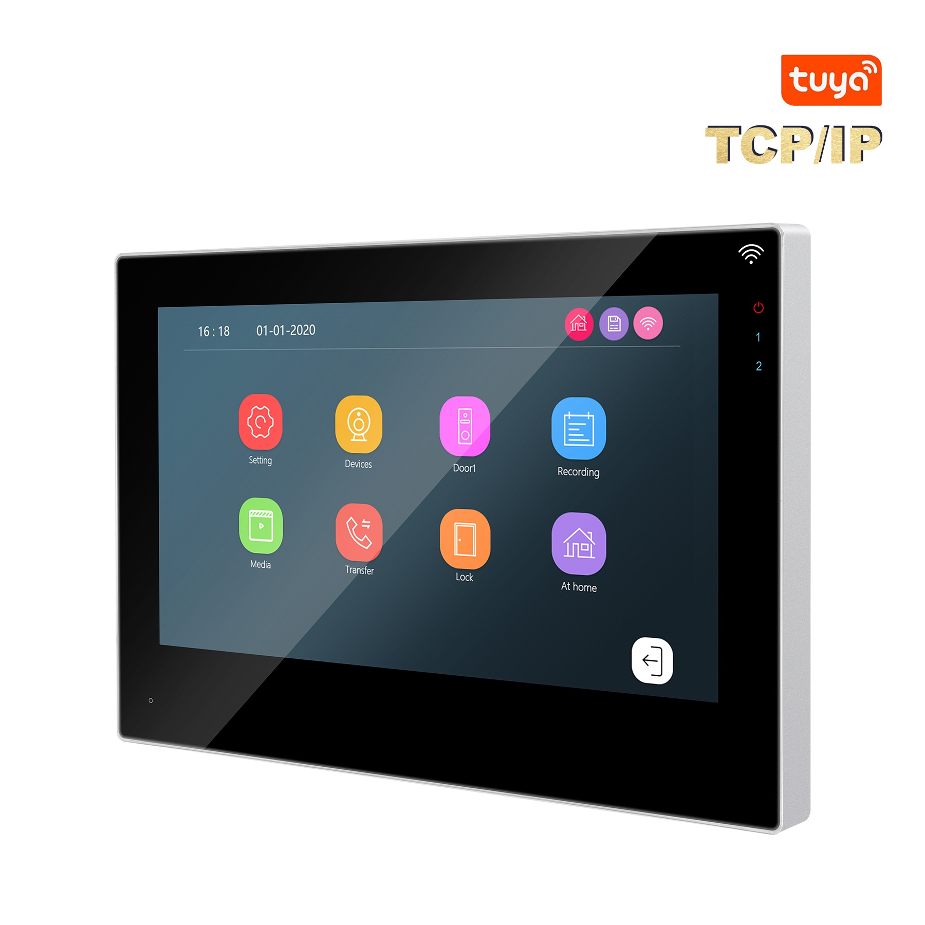 97703-IPVIZA W 7 видеодомофон с сенсорным экраном TCP/IP + Wi-Fi. Система TCP/IP, работает с мобильными устройствами, совместима с приложением Tuya Smart. Высокое разрешение 1080P с цифровой фоторамкой. Индивидуальные мелодии и обои. Наслаждайтесь видео в формате FULL HD на внутреннем мониторе. Приложение TUYA для смартфонов iOS и Android с дистанционным управлением / разблокировкой / разговором. Поддержка карт TF объемом до 128 ГБ. Полная дуплексная связь. Операционная система Встроенный Linux. Технология сенсорного экрана для управления параметрами монитора. Панель из закаленного стекла. Поддержка сети (LAN), подключение и управление с помощью одного кабеля Cat5/6. Встроенный модуль Wi-Fi. Питание PoE или 12 В постоянного тока. Подавление шума и эха.