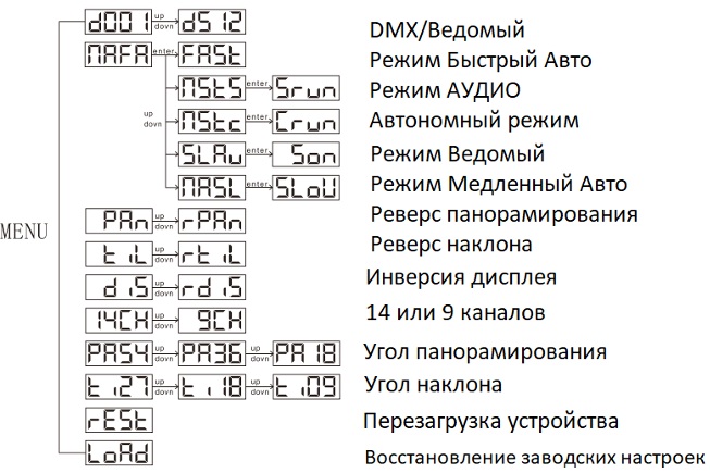1. Машина имеет функцию автоматического распознавания сигнала DMX или SLAVE.